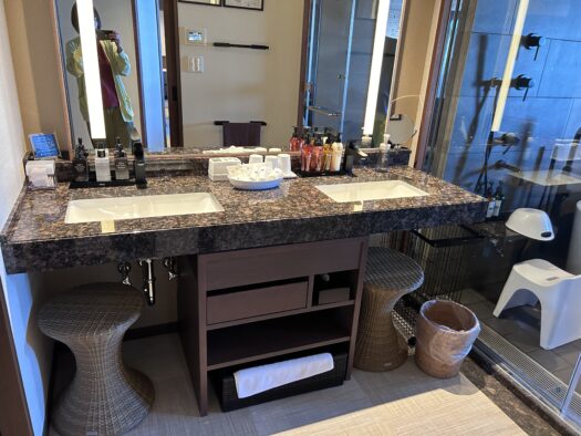 部屋の露天風呂&サウナが良すぎて、大浴場に行くほどではなかったようです。普段は2~3回お風呂入りに行きますが!部屋のお風呂が気に入ってに3回くらい入ってました。