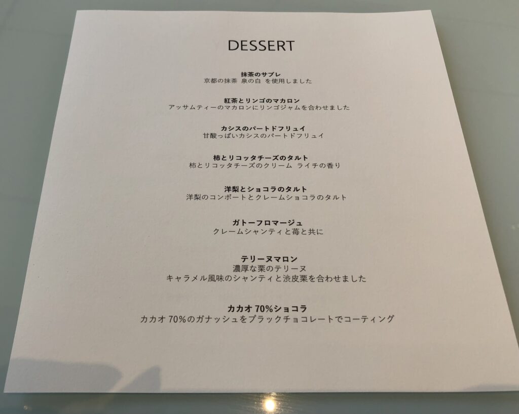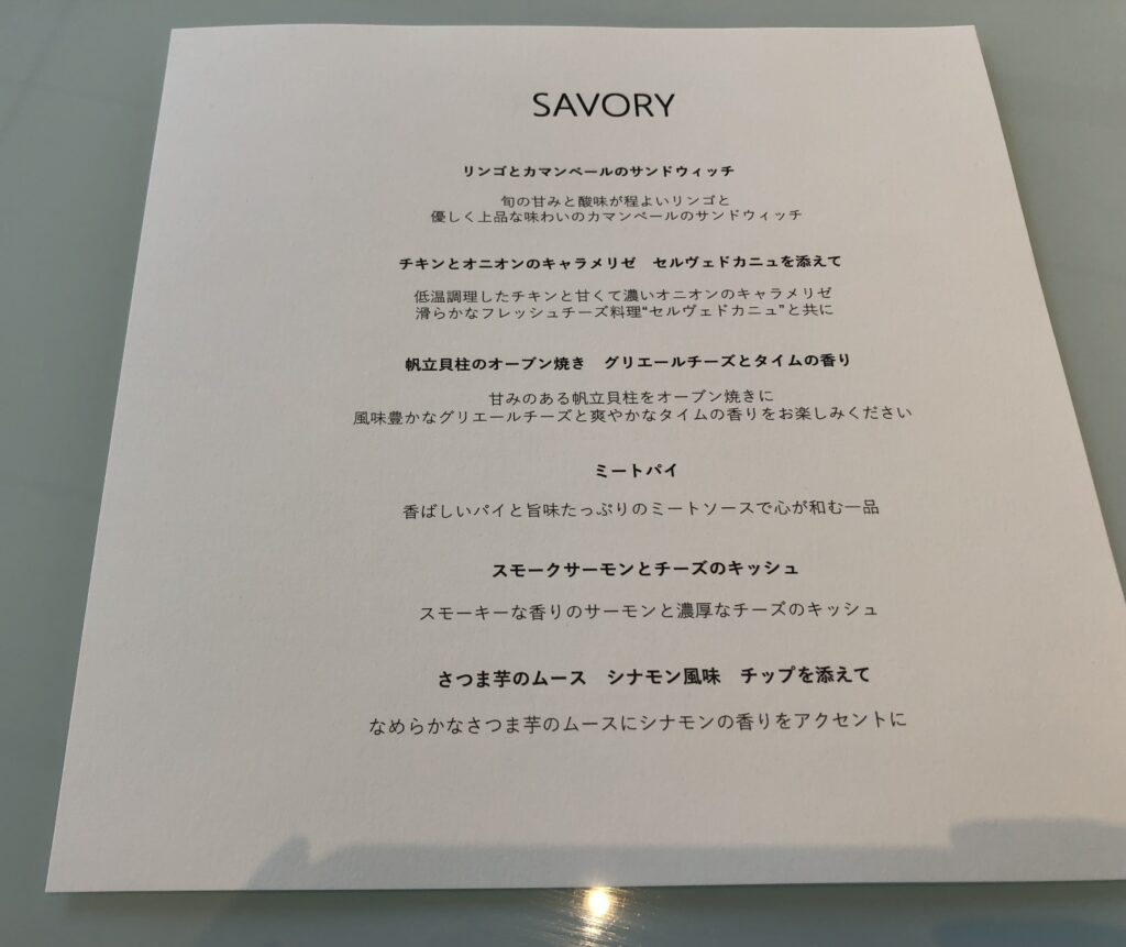 SAVORYとDESSERTが別々にきます。